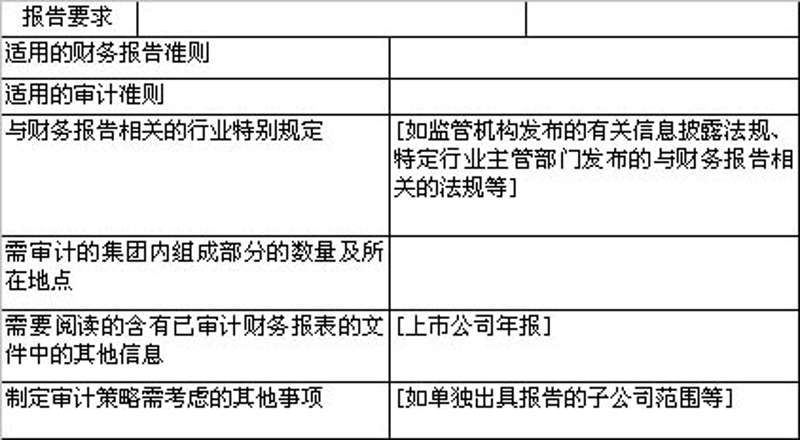 附录1201-1: 总体审计策略记录模式范例 客户名称: 财务报表期间: 工作底稿索引号