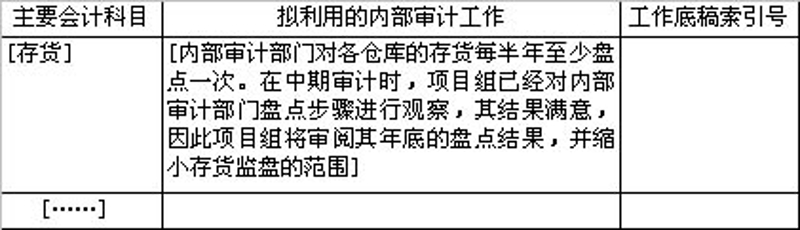 5、对专家或有关人士工作的利用(如适用) [如项目组计划利用专家或有关人士的工作,需记录其工作的范围和涉及的主要会计科目等。另外,项目组还应按照相关审计准则的要求对专家或有关人士的能力、客观性及其工作等进行考虑及评估] 5.1 对内部审计工作的利用
