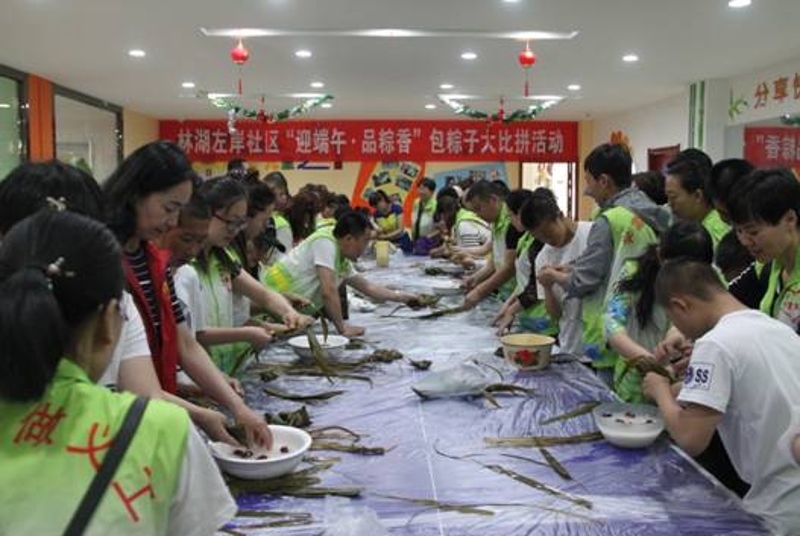 义工们一同学习包粽子