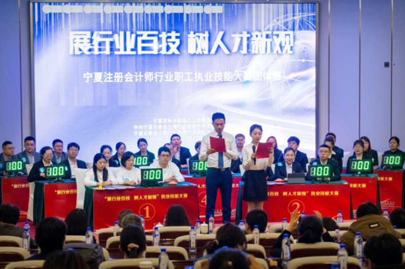 为深入学习贯彻落实党的二十大和中国工会第十八次全国代表大会精神,充分发挥职工职业技能竞赛在“两师”行业人才培养、选拔、评价和激励方面的示范引领作用,11月17日下午,由宁夏农林水财轻工工会、宁夏注册会计师行业和资产评估行业党委、工会共同举办的“展行业百技 树人才新观”职工执业技能大赛团体赛顺利开赛。来自“两师”行业15个代表队的45名参赛选手齐聚一堂同台竞技,展开了一场精彩的知识较量。该项大赛自2023年7月正式启动,以线上个人赛及线下团体赛形式开展,共分为预赛、复赛及决赛三个阶段,前期线上个人赛共6组203人参加比赛。至此,历时四个月的“展行业百技 树人才新观”职工执业技能大赛圆满落幕。