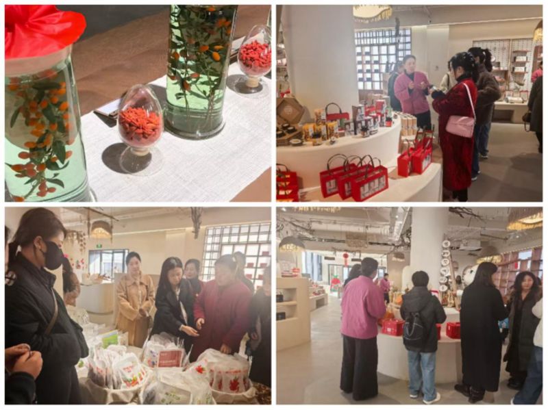 活动同时融入乡村振兴实践,现场设置宁夏特色农产品展示区,枸杞原浆、枸杞叶黄素胶囊、枸杞花蜜等多款枸杞衍生优质农副产品集中亮相,女职工们以消费帮扶的方式助力农产品走出田间,让巾帼之力温暖田间地头,彰显行业社会责任。
