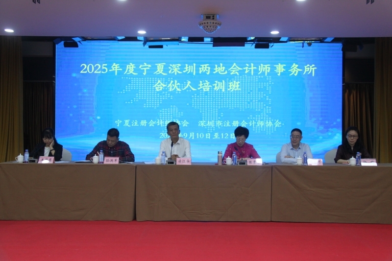 9月10日至12日,深圳宁夏两地会计师事务所合伙人培训班在银川成功举办。此次培训班由深圳注协与宁夏注协联合举办,旨在加强两地注册会计师行业人才交流与合作,推动行业高质量发展。宁夏注册会计师行业和资产评估行业党委书记、宁夏财政厅二级巡视员侯江华、深圳注协会长张素芬出席开班式并致辞,宁夏注协会长李耀忠、秘书长王梦慧,深圳注协秘书长孙洪军、副秘书长杨梅参加开班式。来自深圳、宁夏两地会计师事务所的70余名合伙人参加培训。