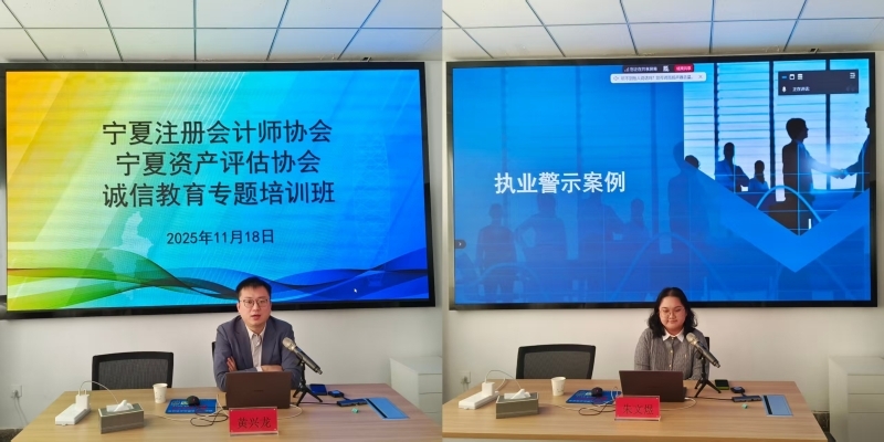 11月18日,宁夏注册会计师协会和宁夏资产评估协会联合举办2025年新批注册会计师和资产评估师诚信教育专题培训班。作为行业诚信建设的重点人群,2025年新设执业机构合伙人、新入会执业会员参加现场培训,其他从业人员参加线上培训,通过系统学习与仪式活动强化诚信执业理念,抓好诚信初始教育。