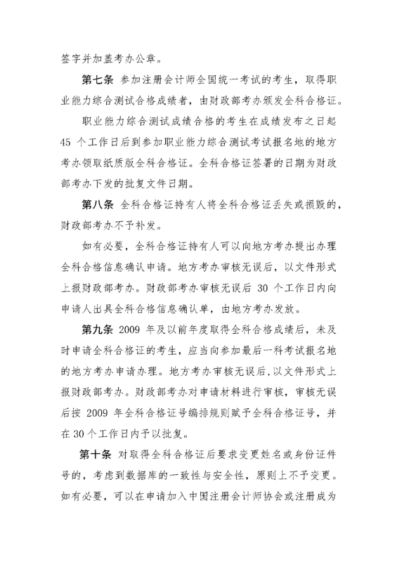 注册会计师全国统一考试合格证管理办法