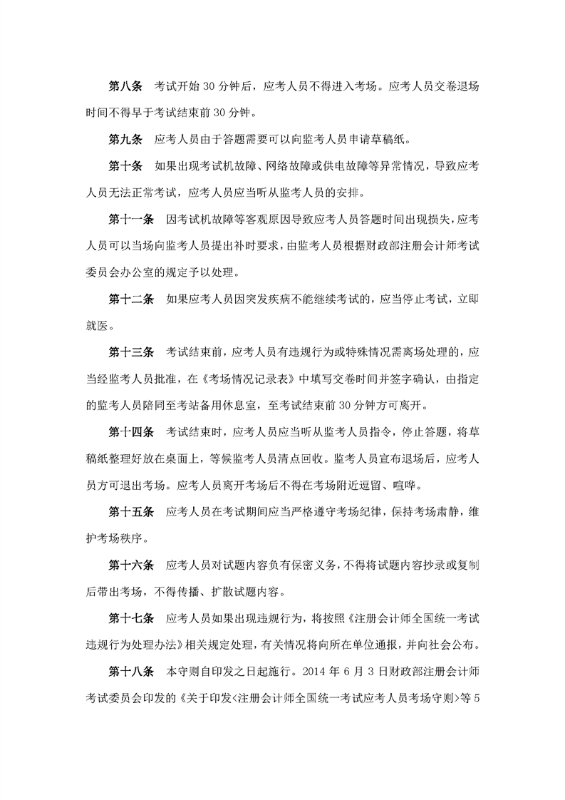 注册会计师全国统一考试应考人员考场守则