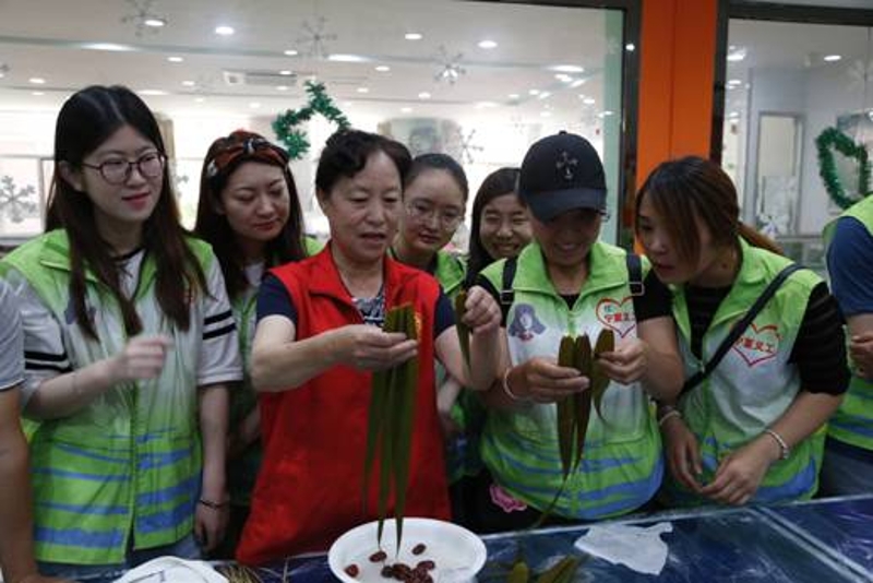 义工们同银川市特殊教育中心的学生代表一起包粽子、体验传统文化,向学生们捐赠了爱心粽子和学习用具,并同全校师生一起进行了游戏互动。