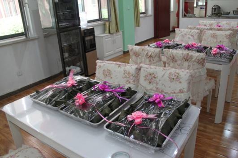 义工们一同学习包粽子