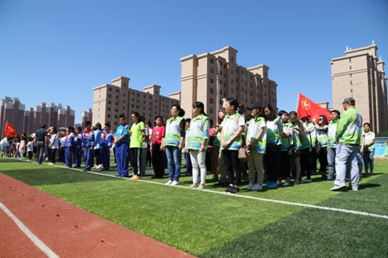 和全校师生在操场活动