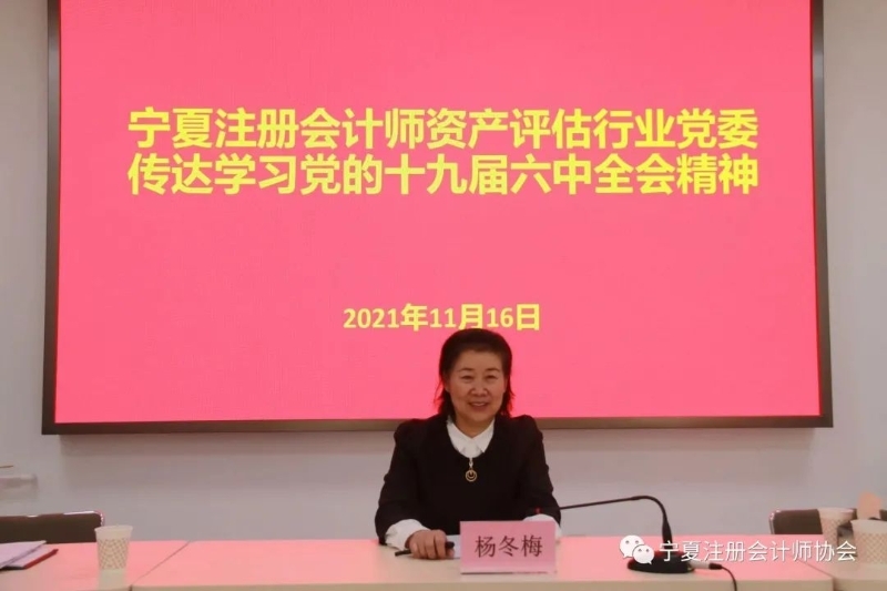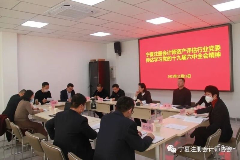 2021年11月16日,宁夏注册会计师行业和资产评估行业召开行业党委(扩大)会,传达学习党的十九届六中全会精神。