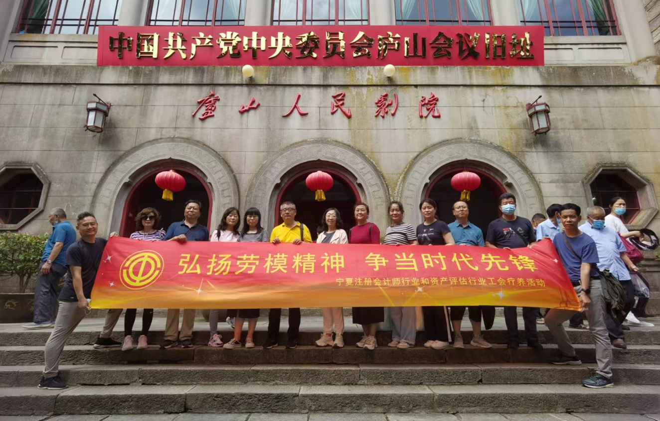 为深入全面贯彻习近平总书记关于工人阶级和工会工作重要论述精神,认真学习贯彻自治区第十三次党代会精神,充分发挥行业工会桥梁纽带作用,最广泛地把职工群众凝聚在党的周围,按照自治区总工会关于做好职工疗休养工作相关要求,宁夏注册会计师和资产评估行业围绕“赓续红色血脉 传承红色精神”主题,组织从业时间较长的技术骨干代表赴江西庐山工人疗养院休息疗养,并参观“八一起义”纪念馆、庐山会议旧址、毛泽东同志旧居等。