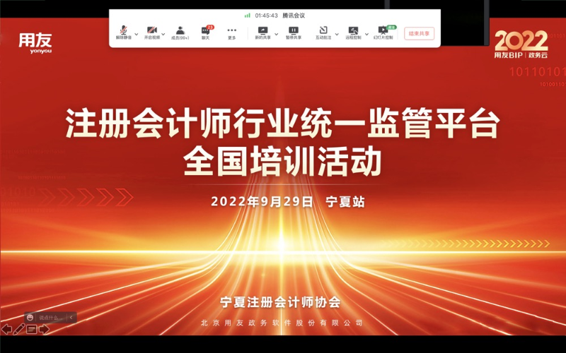 为贯彻落实《国务院办公厅关于进一步规范财务审计秩序促进注册会计师行业健康发展的意见》(国办发〔2021〕30号)相关任务要求,切实提高我区注册会计师行业监管效能,结合财政部下发的《关于注册会计师行业统一监管平台上线运行的通知》(财会〔2022〕32号),宁夏注册会计师协会于2022年9月29日举办了行业统一监管平台操作培训(视频)班,以做好注册会计师行业统一监管平台(以下简称统一监管平台)上线运行管理工作,确保会计师事务所(分所)熟练掌握统一监管平台的各项功能。